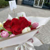 Beautiful dozen red roses with white and pink tulips,wrapped. Glass vase not included