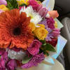 Beautiful combination with bright flowers wrapped. Glass vase not included