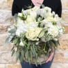 A lavish seasonal arrangement, with our most premium floral varieties in shades of cream, white, and green. Designed in our signature English Garden style and delivered in a clear glass vase.