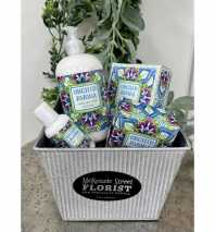 Not sure what to choose for a Christmas present? This box has it all! A dozen gorgeous red roses arranged in a vase with accent flowers, foliage, and a big bow, a fluffy soft teddy bear, a pair of our Julia Harper hypo alergenic, nickle free earrings, and a generous bottle of Greenwich Bay Trading Co. silky hand lotion! We will choose the earrings for you - let us know if you'd like post, hoop, or dangle.