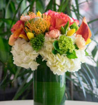 In some instances, the florists’ photo may represent an overall theme or look and include a one-of-a-kind vase which cannot be exactly replicated. Although the actual bouquet may not precisely match the photo, its temperament will. Occasionally, substitutions of flowers or containers happen due to weather, seasonality and market conditions which may affect availability. If this is the case with the gift you've selected, the local florist will ensure that the style, theme and color scheme of your arrangement is preserved and will only substitute items of equal or higher value.