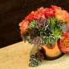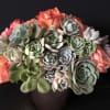Twenty orange roses with 15 small to medium amazing succulents!
