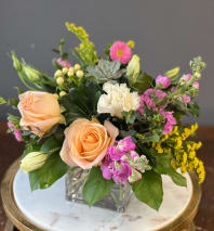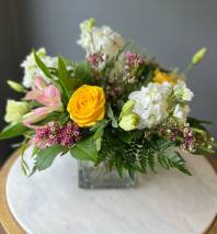 In some instances, the florists’ photo may represent an overall theme or look and include a one-of-a-kind vase which cannot be exactly replicated. Although the actual bouquet may not precisely match the photo, its temperament will. Occasionally, substitutions of flowers or containers happen due to weather, seasonality and market conditions which may affect availability. If this is the case with the gift you've selected, the local florist will ensure that the style, theme and color scheme of your arrangement is preserved and will only substitute items of equal or higher value.
