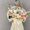 Depending on the season, the bouquet may include luxurious ranunculus or stunning premium peonies, adding extra softness, volume, and a beautiful garden-style look. The color palette of ivory, blush, and soft pastel tones creates a refined, feminine, and incredibly stylish arrangement.