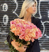 A joyful, colorful bouquet designed to brighten any day. Featuring vibrant roses, textured carnations, green chrysanthemums, sculptural succulents, delicate fillers, and fresh eucalyptus, this arrangement feels lively, modern, and full of positive energy!