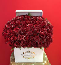 UNIQUE RED AND WHITE ROSES IN WHITE SQUARE BOX