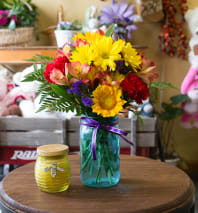 A little bit of this and a little bit of that, just enough to show your love and affection. Flowers and colors may vary