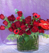 This low and lush designer's choice arrangement is hand crafted in Las Vegas by our all-women design team using the freshest high end florals from around the world. Our arrangements are created with love and delivered with care for you!