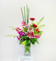 In some instances, the florists’ photo may represent an overall theme or look and include a one-of-a-kind vase which cannot be exactly replicated. Although the actual bouquet may not precisely match the photo, its temperament will. Occasionally, substitutions of flowers or containers happen due to weather, seasonality and market conditions which may affect availability. If this is the case with the gift you've selected, the local florist will ensure that the style, theme and color scheme of your arrangement is preserved and will only substitute items of equal or higher value.