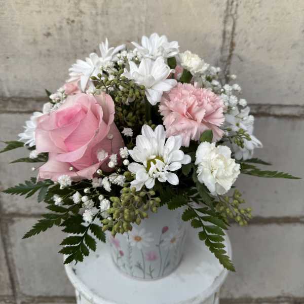 Our sister, widow of the deceased, said, “It is a beautiful bouquet, especially the unusual pink and white rose, and it is staying fresh for so long.”