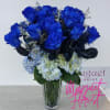 Embark on a journey into enchanting serenity with the "Azure Dreams" tall vase arrangement. This captivating ensemble combines the rare beauty of blue roses and the lush elegance of blue hydrangeas, creating an account that immerses you in a tranquil sea of calming hues. Like a reflection of clear skies and calm waters, this arrangement captures the essence of serene dreams and unspoken emotions.