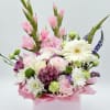 A bright and lively floral composition with elegant gladiolus taking center stage. Their tall silhouettes and rich tones bring a sense of movement and freshness, while surrounding seasonal flowers add softness and charm.