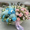 Lush Basket for a Gender Reveal Party — a vibrant and heartwarming centerpiece for one of life’s most exciting moments. A rich mix of flowers in soft pink and baby blue shades symbolizes the anticipation of a miracle and the blend of two gentle energies — tenderness and dreams.
