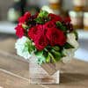 The Embrace is apart of our Petite collection. All good things do come in small packages as this arrangement is a beautiful combination of Red Roses, Red Tulips, White Spray Roses in a 4x4 white wash wood box. Send someone a small embrace they can enjoy on their desk at work or on the coffee table at home.