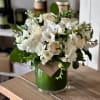 Arranged in a modern glass cylinder vase