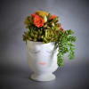 A Celfie Vase filed with succulents and seasonal yellow and orange florals. The Container is 5.5 inches in Height and 4 Inches wide Arrangement is approximately 8 Inches high and 6.5 wide. Contains 4 succulent plants on the standard and to 6 succulents on deluxe. Exact succulents are not always available.