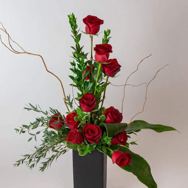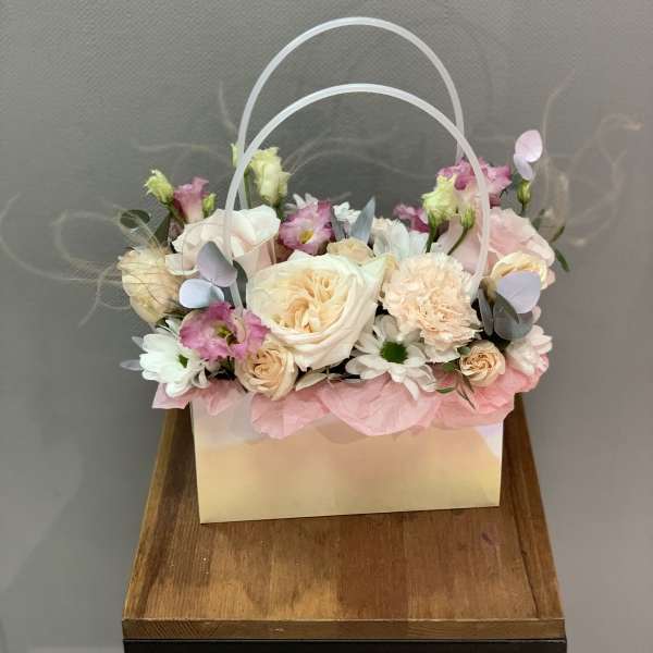 What was delivered was not at all what is pictured. The box was different, the flowers were different. Instead of roses, there were other flowers stuck in. None of the greenery as pictured - just some rose leaves. VERY disappointed. It was not what I paid for!