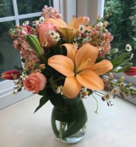 In some instances, the florists’ photo may represent an overall theme or look and include a one-of-a-kind vase which cannot be exactly replicated. Although the actual bouquet may not precisely match the photo, its temperament will. Occasionally, substitutions of flowers or containers happen due to weather, seasonality and market conditions which may affect availability. If this is the case with the gift you've selected, the local florist will ensure that the style, theme and color scheme of your arrangement is preserved and will only substitute items of equal or higher value.
