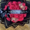Surprise her with a breathtaking arrangement of premium red roses, elegantly wrapped in black and gold for a luxurious finish. Accented with custom butterflies and a satin ribbon featuring the heartfelt message “Do You Want To Be My Girlfriend?”, this bouquet is the perfect way to make your proposal unforgettable.