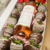 Wine box with 8 roses & 12 chocolate covered strawberries