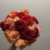 Peach and red garden roses, and red alstroemeria