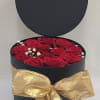 Very Elegant Black round box with a lid field with 12-14 red roses and Baby breath.