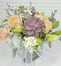 In some instances, the florists’ photo may represent an overall theme or look and include a one-of-a-kind vase which cannot be exactly replicated. Although the actual bouquet may not precisely match the photo, its temperament will. Occasionally, substitutions of flowers or containers happen due to weather, seasonality and market conditions which may affect availability. If this is the case with the gift you've selected, the local florist will ensure that the style, theme and color scheme of your arrangement is preserved and will only substitute items of equal or higher value.