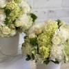 Modern spherical arrangement, compact with green & white flowers