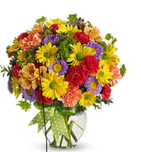 In some instances, the florists’ photo may represent an overall theme or look and include a one-of-a-kind vase which cannot be exactly replicated. Although the actual bouquet may not precisely match the photo, its temperament will. Occasionally, substitutions of flowers or containers happen due to weather, seasonality and market conditions which may affect availability. If this is the case with the gift you've selected, the local florist will ensure that the style, theme and color scheme of your arrangement is preserved and will only substitute items of equal or higher value.