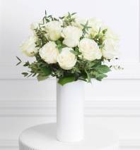 Our classic preserved rose composition includes the most gorgeous preserved roses, hand-crafted in a decorative white ceramic vase. Our preserved roses were once fresh roses that have been treated one by one to last an entire year! The overall design has a modern yet classic appearance and is a versatile design you're sure to adore! Our preserved rose compositions make for a such memorable gift for you or someone special!