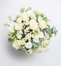 Felice is our most irresistible blush bouquet. With white and pink roses, pink alstroemeria and lisianthus, pink veronica, and baby blue eucalyptus, these flowers are able to transport everyone to sweet, soft daydreams. Vase not included.