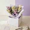 Unpack: Gently lift the bouquet from the box. Remove the plastic bag and wet towel from the stems.