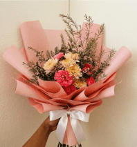 While our flowers are inspired by the garden our presentation is inspired by modern artistry. We specialize in the Double-Wrap technique using layers of premium matte kraft paper and soft silk linings to create a voluminous and architectural frame for our stems. Finished with a signature satin bow. An Olivia and Mum bouquet isn't just a gift it's an experience.
