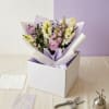 Unpack: Gently lift the bouquet from the box. Remove the plastic bag and wet towel from the stems.