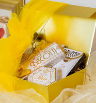 A delightful gift box featuring gourmet treats, delicate blooms, and elegant gold accents, perfect for any occasion.