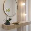 A high quality Double yellow orchid arrangement with a vase 8.5" D X 3" T. An orchid arrangement flower deliver for any occasion design with fresh natural real beautiful Phalaenopsis cascade orchid plant minimalist decor.