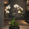 This elegant Double White Phalaenopsis Cascade orchid arrangement creates a striking vertical presence, making it ideal for grand interiors and modern living spaces with a vase 12.5" D X 5" T.