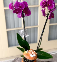 Our double phalaenopsis orchid garden and red poinsettia makes the loveliest classy winter gift for someone very special. It's a perfect blend of elegance and seasonal cheer, sure to bring joy and warmth to any home.