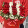 Wow the one you love by Sending one of a kind luxurious sweet gift. Red flower box with 19 or 25 roses accented with Ferrero Chocolates, arranged in a red flower box size is 8"x8"x7.5".