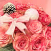 Embrace the power of pink in this lovely December seasonal hand wrapped bouquet! Send pink zebra stripe roses gift that is sure to please the one you love! with your choice of 13, 25, or 35 zebra stripe pink roses accented with pinecone , pink ribbon, and pink ornaments. Wrapped in gift wrap paper and dressed with ribbon.