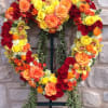 A 24 inch heart wreath with vibrant roses, orchids, and hydrangea.