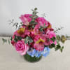 A colorful variety of flowers arranged in a short cylinder or square vase will add happiness to your loved ones day.