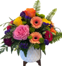 In some instances, the florists’ photo may represent an overall theme or look and include a one-of-a-kind vase which cannot be exactly replicated. Although the actual bouquet may not precisely match the photo, its temperament will. Occasionally, substitutions of flowers or containers happen due to weather, seasonality and market conditions which may affect availability. If this is the case with the gift you've selected, the local florist will ensure that the style, theme and color scheme of your arrangement is preserved and will only substitute items of equal or higher value.