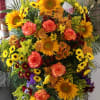 beautiful, showy seasonal tribute featuring a gorgeous array of fall flowers that include