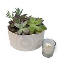 Designed in a modern low dish with Arizona-native flair, it’s packed with Kahala roses, pincushion protea, thistle, and desert textures—and looks like it walked off the set of a cactus-studded fashion shoot- red rock included.