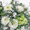Add a frosty touch of whimsy to someone's holiday with Snowberry! This delightful arrangement combines snowy white mums, elegant Playa Blanca roses, mini green hydrangea, lush evergreen sprigs, and playful pearl-like snowberries that twinkle like winter magic. With cascading evergreen and soft eucalyptus accents, it’s a cheerful reminder of snowy days and cozy nights. Perfect for gifting or spreading joy, Snowberry is as fun and festive as a holiday snowball fight—minus the cold! Designed in a modern, white ceramic bowl.