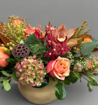 In some instances, the florists’ photo may represent an overall theme or look and include a one-of-a-kind vase which cannot be exactly replicated. Although the actual bouquet may not precisely match the photo, its temperament will. Occasionally, substitutions of flowers or containers happen due to weather, seasonality and market conditions which may affect availability. If this is the case with the gift you've selected, the local florist will ensure that the style, theme and color scheme of your arrangement is preserved and will only substitute items of equal or higher value.