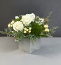 Pure white flowers, in a cylinder vase, are perfect for any occasion