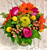 In some instances, the florists’ photo may represent an overall theme or look and include a one-of-a-kind vase which cannot be exactly replicated. Although the actual bouquet may not precisely match the photo, its temperament will. Occasionally, substitutions of flowers or containers happen due to weather, seasonality and market conditions which may affect availability. If this is the case with the gift you've selected, the local florist will ensure that the style, theme and color scheme of your arrangement is preserved and will only substitute items of equal or higher value.