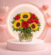Romantic, bold, and absolutely breathtaking — Blushing Lily & Rose Luxe features a lavish blend of soft pink oriental lilies and premium long-stem red roses, beautifully arranged in a tall clear glass cylinder vase for a dramatic, elegant presentation.